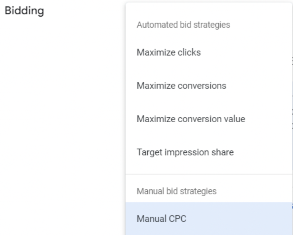 - Manual CPC (Cost-per-click): You set your maximum bid for clicks.